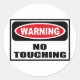 Mise en garde NO TOUCHING Sticker you can customize at www.WarningSignShirts.com and feobjets a red and black warning sign and NO TOUCHING in bold black letters to warn the world. Donc, vous pouvez customize your own warning sign Sticker with the text you want.