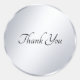 Autocollant rond classique élégant texte de remerciement écriture manuscrite moderne modèle argent métallisé.
