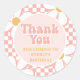 Retro checker print with Daisies Thank You Birthday party stickers in pink.
