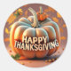 "This sticker features an exquisite golden pumpkin as the centerpiece of its design. The heart of the pumpkin features a sign that reads "Happy Thanksgiving." The golden pumpkin shines with a warm, festive glow, and its elegant design evokes the abundance and celebration that are associated with Thanksgiving. This sticker is a perfect display of gratitude and joy that you can use to decorate gifts or any surface on this special occasion of the year."