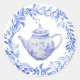 Sticker Rond Théière Bleue et Blanche avec Guirlande