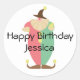 Un autocollant d'anniversaire à thème clown mignon prêt à customiser avec le nom de votre enfant. Invitations de partie correspondant disponibles dans cette conception. Image clown avec l'aimable autorisation de vecteezy.com