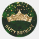 Sticker Rond Tiara d'or avec bokee d'or et anniversaire vert