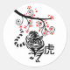 Sticker Rond Tigre et fleurs rouges du Nouvel An chinois