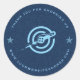 Sticker Rond Tissu de denim bleu typographie personnalisée.