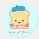 Servez ce toast français mignon et heureux pour le petit déjeuner et mettez un sourire sur le visage du destinataire. La tranche de pain est équipée d'une moustache et porte un béret bleu français et un foulard rayé rouge et blanc. Kawaii et amusant !