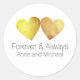Sticker Rond toujours & toujours, deux coeurs faux or sur maria