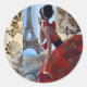 Sticker Rond Tour Eiffel, Robe Rouge, Allons-y