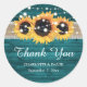 Campagne rustique personnalisée Mariage turquoise et tournesol faveur autocollants/enveloppes scellés idéal pour votre pays rustique turquoise, jardin, jardin ou grange mariage inspiré des tournesols. Objets correspondants disponibles pour ces mariages floraux rustiques merci les autocollants représentant des tournesols sur un arrière - plan en bois de grange orné de lampes à cordes, burlap et dentelle.