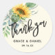 Autocollant de remerciement de tournesol aquarelle rustique et de verdure d'eucalyptus pour mariages ou toute occasion spéciale.