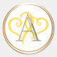 Sticker Rond TOUTES LES INITIALES Monogramme Or Deux Coeurs Jau