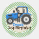 Sticker Rond Tracteur agricole bleu mignon ; Anniversaire vert