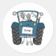 Sticker Rond Tracteur bleu personnalisé Pays Barne Mariage rust