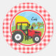 Sticker Rond Tracteur rouge sur En vichy rouge et blanc