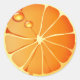 Orange slice - image graphique amusante et rafraîchissante imprimée sur cet autocollant rond - idéal pour les cuisines, les salles à manger, les cafés . du magasin de lumirala.