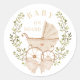 Ces autocollants Baby on Board comportent un petit buggy vintage entouré de feuilles. Parfait pour sceller les enveloppes d'invitation de baby shower.