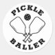 Autocollant rond à pickleball tendance avec un logo personnalisé "PICKLE BALLER" de deux pagaies et une balle délimitée par la phrase d'en-tête de la tasse. Grande embellie aux cartes, cadeaux et plus encore. Une idée de cadeau amusant pour les anniversaires, la fête des mères, la Fête des pères, l'anniversaire, n'importe quel jour vraiment! Disponible dans un assortiment de couleurs modernes et énergiques.