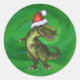 Sticker Rond TRex à Santa Hat sur Green