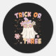 Sticker Rond Trick Or Three Cute Ghost Groovy 3rd Birthday Soky