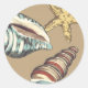 Megan Meagher est connue pour ses oeuvres d'art simples. C'est une grande image d'art décoratif qui capte la vie marine avec une étoile de mer jaune et une coquille de conque bleue et rouge. Obtenez cette impression fine d'art aujourd'hui sur couleur kaki sur votre produit Zazzle.