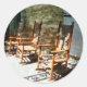 Sticker Rond Trois chaises rocheuses en bois sur Porc ensoleill
