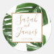 Tropical Palm Leaf vert rose mariage or autocollant. Personnalisez avec votre nom et votre date