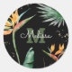 Sticker Rond Tropical Palm Monogramme Écriture Pailleté Or Noir