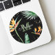 Ressentez et partagez des vibrations tropicales à tout moment en utilisant cet autocollant de nom personnalisé, élégant, simple et moderne. Des oiseaux de paradis aux fleurs colorées tropicales aquarelles, un faux strass doré et un script calligraphique personnalisé avec une initiale de monogramme gras, sur un fond noir dramatique. Personnalisez avec votre prénom, nom de famille ou message + monogramme. Choisissez parmi différentes formes et tailles. Utilisez-le fièrement sur les enveloppes, les sacs de friandises et tout ce que vous voulez personnaliser ! Cela fait une déclaration stylée chaque fois que vous l'utilisez.