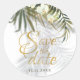 Ce mariage tropical moderne et élégant à fleurs sauvez l'autocollant de date présente de belles frondes de palmiers délicats et orchidées blanches avec de belles ombres et élégant écriture manuscrite or élégant. C'est l'invitation parfaite de mariage moderne plage ou un lieu de mariage tropical destination comme la Floride ou Hawaii. Le dos de la carte comporte une autre ombre d'orchidée avec vos noms et date mariage. Facile à customiser avec vos propres informations de mariage. Conception par T.K. Goforth, tous droits réservés.