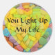 Produits amusants avec arrière - plan de coeurs de bonbons valentin traditionnels avec une superposition en forme de coeur jaune et texte personnalisable lisant "You Light Up My Life."