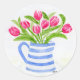 Sticker Rond Tulipes Aquarelles Peintes à la main, Pitcher Bleu