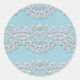 Sticker Rond Turquoise Bleu Blanc dentelle Coeur Mariage
