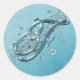 Sticker Rond Turquoise Bleu Parties scintillant Argent Script T
