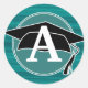 Monographie de la casquette de graduation turquoise, noire et blanche / autocollant initial