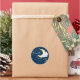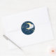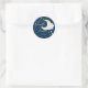 Thème Parties Twinkle Twinkle Little Star baby shower rond autocollant design comprend des éléments d'aquarelle incluant une mignonne lune d'aquarelle flottant sur des nuages pastel bleu aquarelle et entourée d'étoiles jaunes aquarelles. Notre design autocollant baby shower est accentué de petites étoiles et de typographie de brosse lettrée à la main et mis sur arrière - plan bleu marine. La typographie des accents de script est associée à des lettres de bloc modernes. #BabyShower #HerABoy