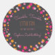 L'autocollant rond de la fête d'anniversaire de cet enfant présente un thème Twinkle Twinkle Little Star avec un arrière - plan de tableau noir et des étoiles rose, orange et argent brillants.