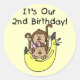Sticker Rond Twins Monkey Boy and Girl 2e anniversaire