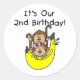 Sticker Rond Twins Monkey Boy and Girl 2e anniversaire