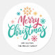Typographie Stars et Snowflakes Joyeux Sticker rond classique de Noël. Personnalisez avec votre nom/nom de famille.