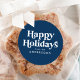 Sticker Rond Typographie Rétro Bleu Joyeuses Fêtes