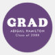 Autocollants de graduation personnalisés avec "Grad" en caractères gras blancs rétro avec un arrière - plan violet (couleur modifiable). Personnalisez les autocollants de graduation violets en ajoutant le nom et l'année de graduation du diplômé. Les autocollants de graduation personnalisés sont parfaits pour sceller les enveloppes, les sacs de finition, etc.