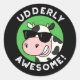 Sticker Rond Uderly Awesome Funny Cow Pun Dark BG