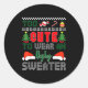 Sticker Rond Ugly Christmas Sweater, Too Cute To Wear An Ugly S