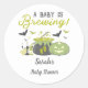 Baby shower de sorcière Halloween, Nom personnalisé Sticker rond classique pour bébé fille ou garçon