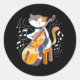 Sticker Rond Un Chat Mignonne Jouant À La Basse Double