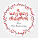 Cet autocollant festif "A Berry Merry Christmas" personnalisé comporte un anneau de baies rouges avec le thème de l'accueil dans la police brushscript contemporaine. Ce texte a été subtilement ombragé pour ressembler au jus de baies. Insérez votre nom ou autre texte à la place de l'exemple de texte affiché. Disponible en 2 tailles : plus petite 1/2" et plus grande 3".