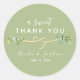 Moderne, élégant, doré et vert Un sticker de mariage Merci sucré, avec le feuillage d'eucalyptus et le coeur de corde.