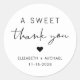 Chic autocollant de remerciement pour vos faveurs de mariage mettant en vedette "Un Merci doux" dans une typographie moderne simple et un script élégant, et vos noms et date mariage.