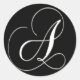 Un monogramme avec un arrière - plan noir, un script blanc initial et une bordure argentée. Un autocollant parfait pour vos enveloppes mariages, sacs cadeaux ou autres décors pour votre mariage élégant.