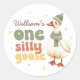Sticker rond classique de Noël à oie sotte vert 1er anniversaire